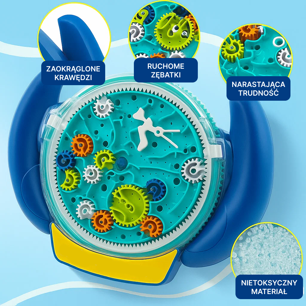 Tak! Kolorowe zębatki są funkcjonalne i kręcą się podczas prowadzenia kulki przez labirynt, co dodatkowo uczy mechaniki.