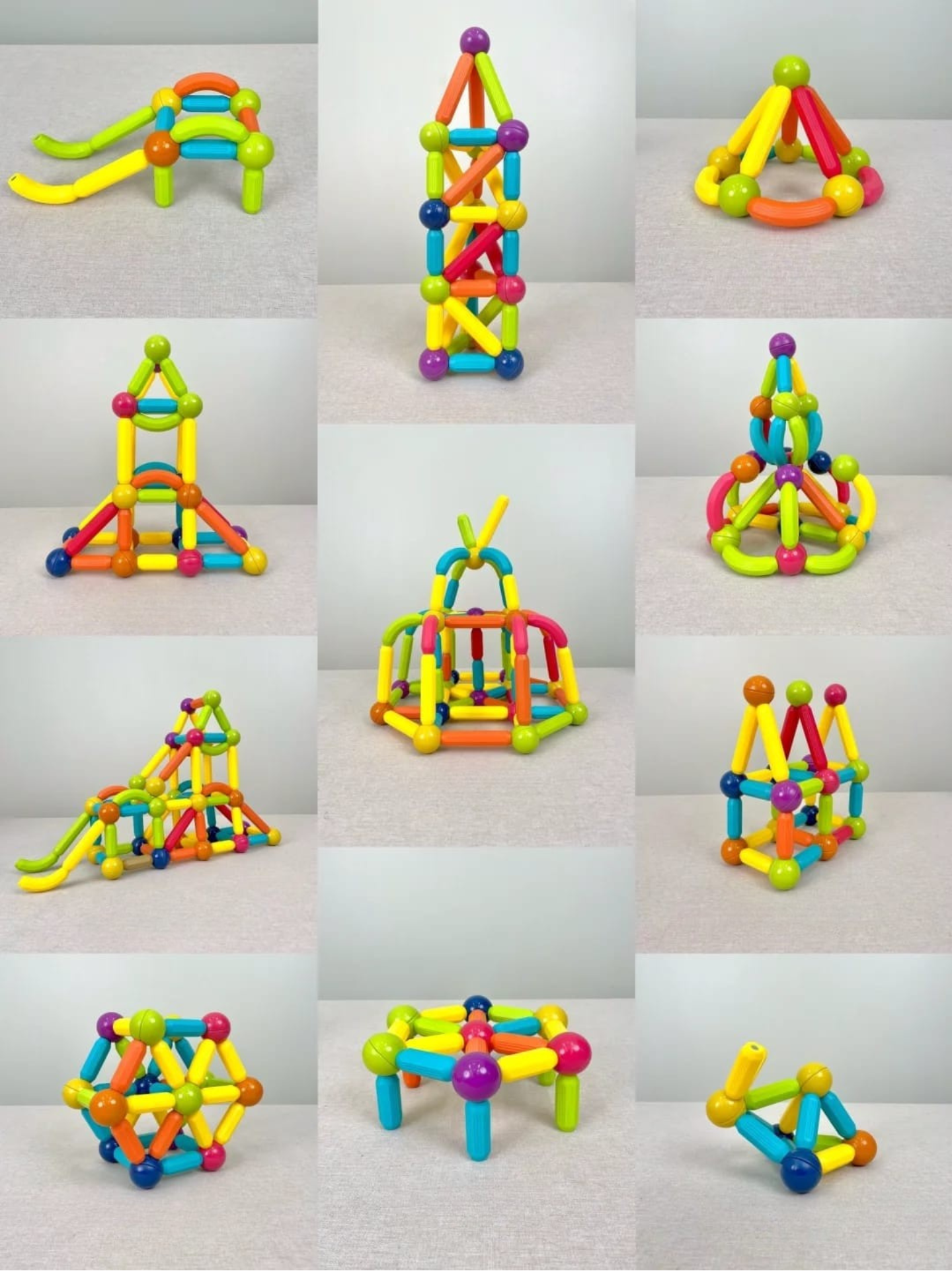 Możliwości są praktycznie nieograniczone – od prostych domków i wież, po zamki, pojazdy i całe miasteczka. Wszystko zależy od wyobraźni dziecka!